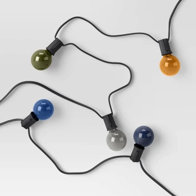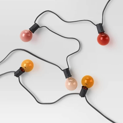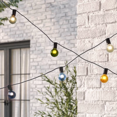 Create a warm and inviting atmosphere anywhere around your home with these 20-Count Incandescent Glass G40 Bulbs from Room Essentials™. Joined together with a black wire, this stylish set of string lights include multiple rounded bulbs in varying colors for a warm, cheery look. The bulbs glow with constant lighting to help create a glowing space on your patio, or anywhere you like to entertain indoors or out. String them between several trees or posts in your outdoor space, or hang them along the wall indoors for a decorative look that instantly adds to your party decor.