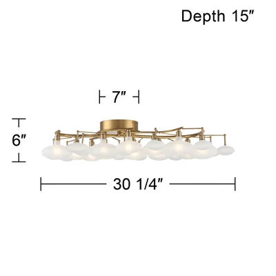 Possini Euro Design Lilypad Modern Ceiling Light Semi Flush Mount Fixture 30 1/4″ Wide Warm Brass 12-Light Frosted Glass Shade For Bedroom Living Room